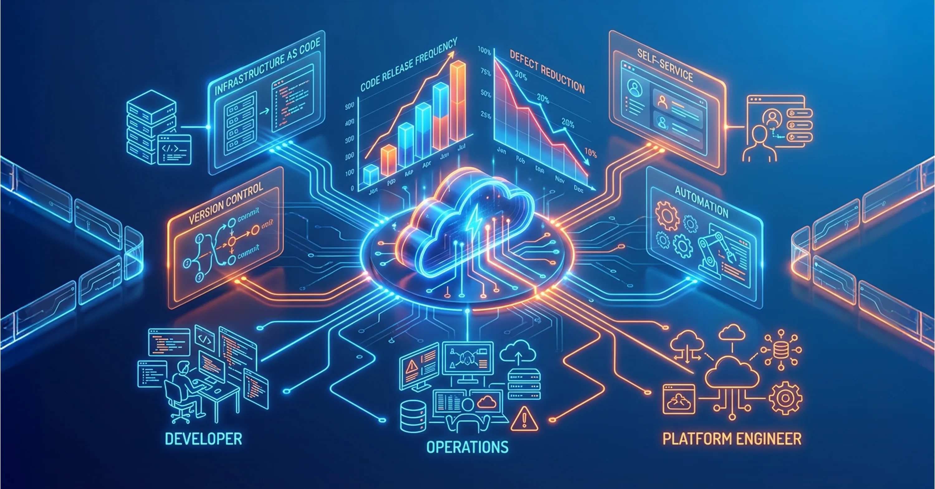 At scale, DevOps on shared cloud platforms has helped organizations release 100–200 times more frequently while cutting defects by up to 70% - results that only come when development and operations share tooling, guardrails, and accountability. Even so, fast pipelines and good collaboration tools are not enough on their own. Those capabilities need structure behind them.