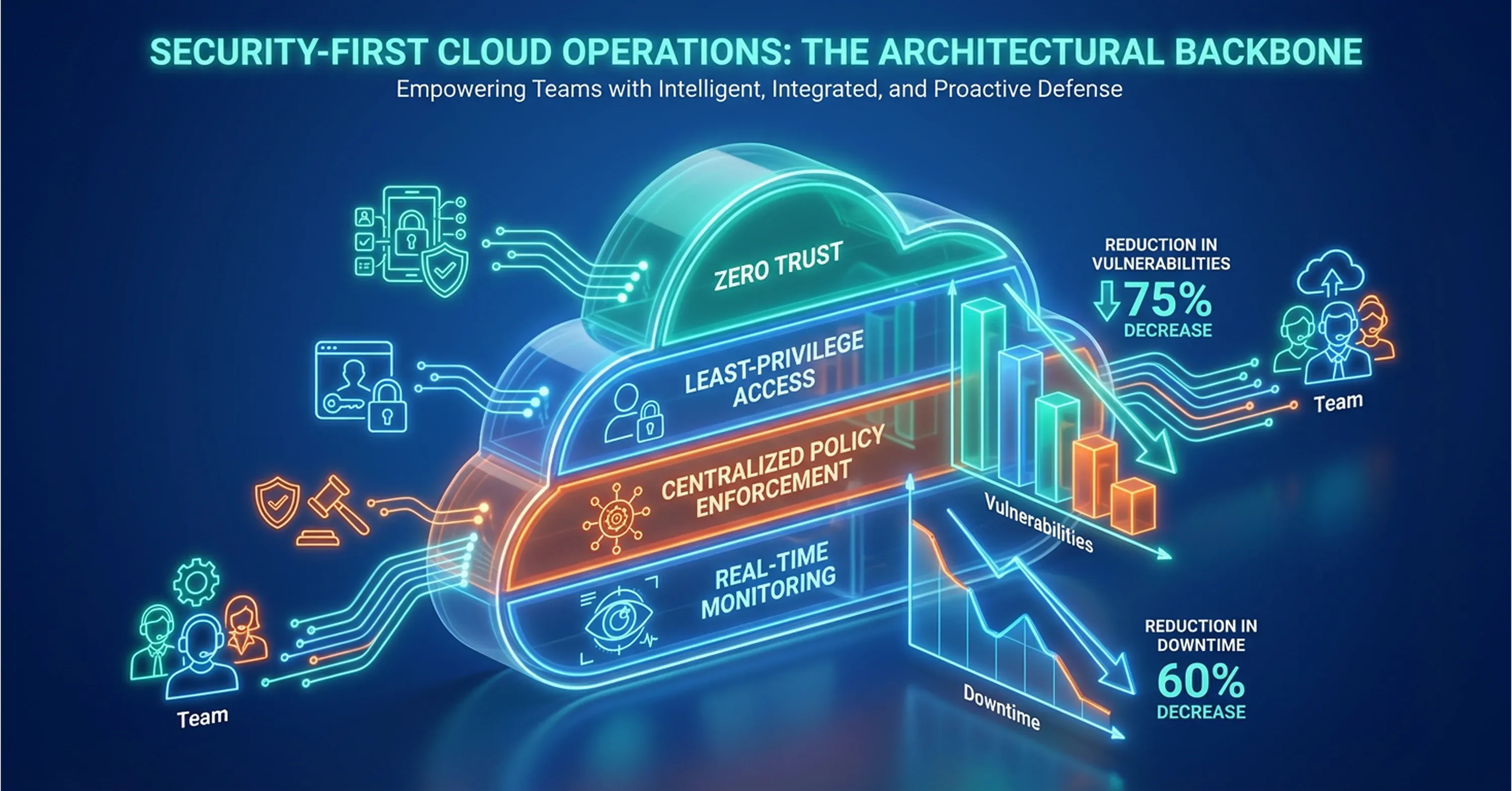 Cloud security has become the foundational layer of modern IT infrastructure because organizations now depend on secure cloud environments to run critical systems, manage sensitive data, support remote operations, and maintain uptime. Security is no longer added after deployment. It is embedded into infrastructure design, DevOps workflows, and daily operations. Key approaches include zero trust, least-privilege access, centralized policy enforcement, and continuous monitoring across hybrid and multi-cloud environments.