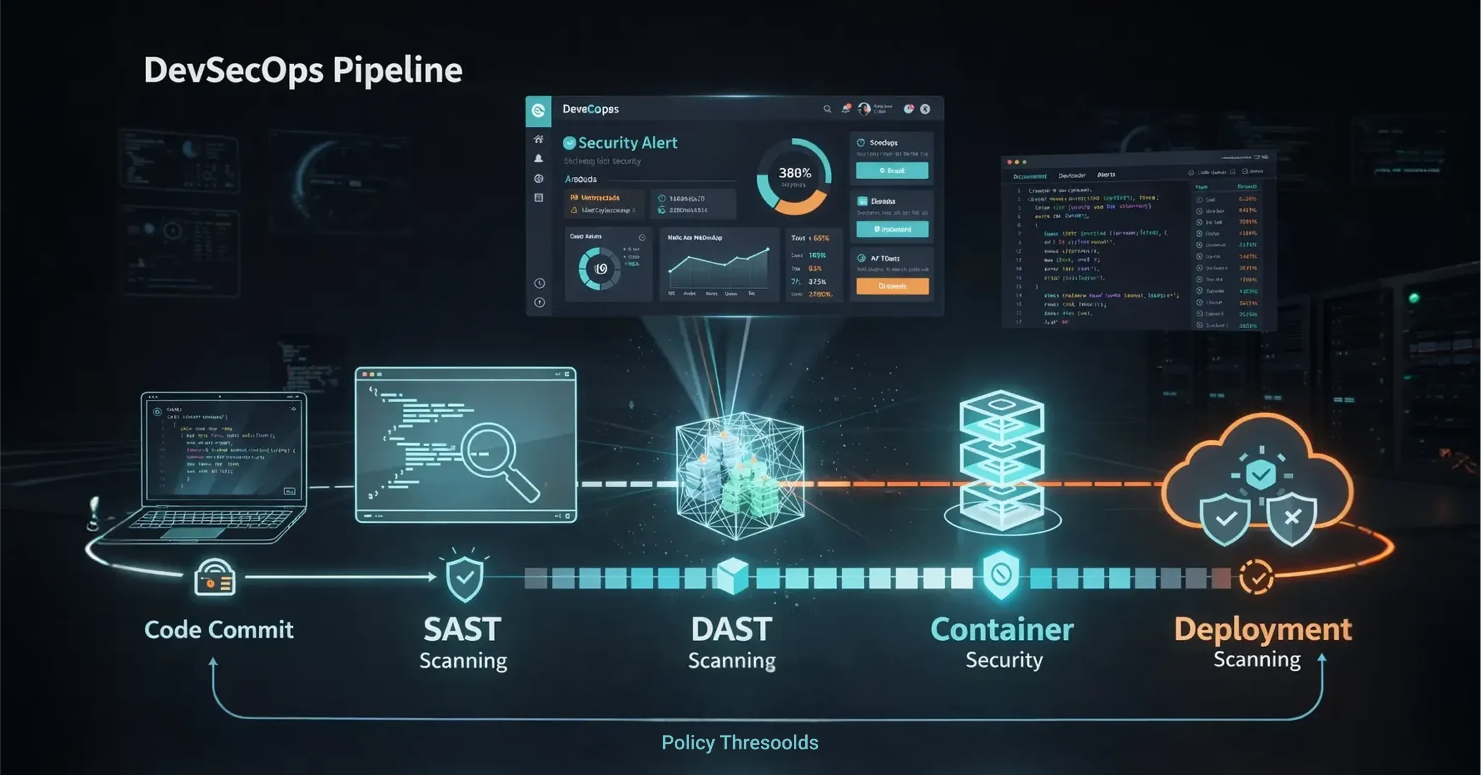 Test stage: Dynamic Application Security Testing (DAST) attacks a running build, while container scanners validate base images.