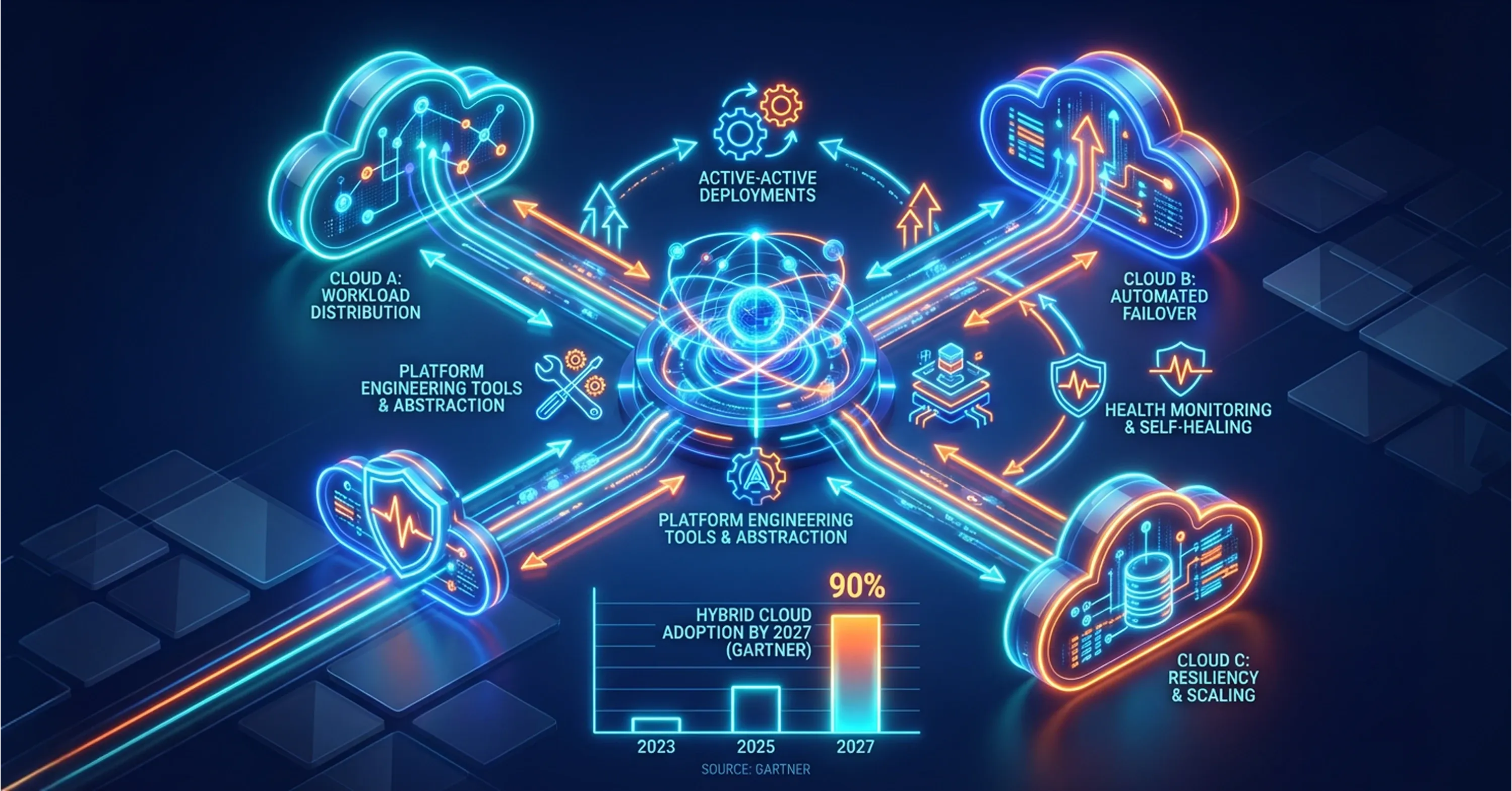 Gartner forecasts that 90% of organizations will adopt a hybrid cloud approach through 2027, and resilience is a major driver behind that trajectory. While hybrid cloud combines private and public infrastructure, multi-cloud goes further - distributing workloads across two or more public cloud providers to eliminate single points of failure and maximize deployment flexibility. For DevOps teams specifically, resilience is not just about uptime. It is about maintaining the ability to deploy continuously, even when parts of the infrastructure experience issues.