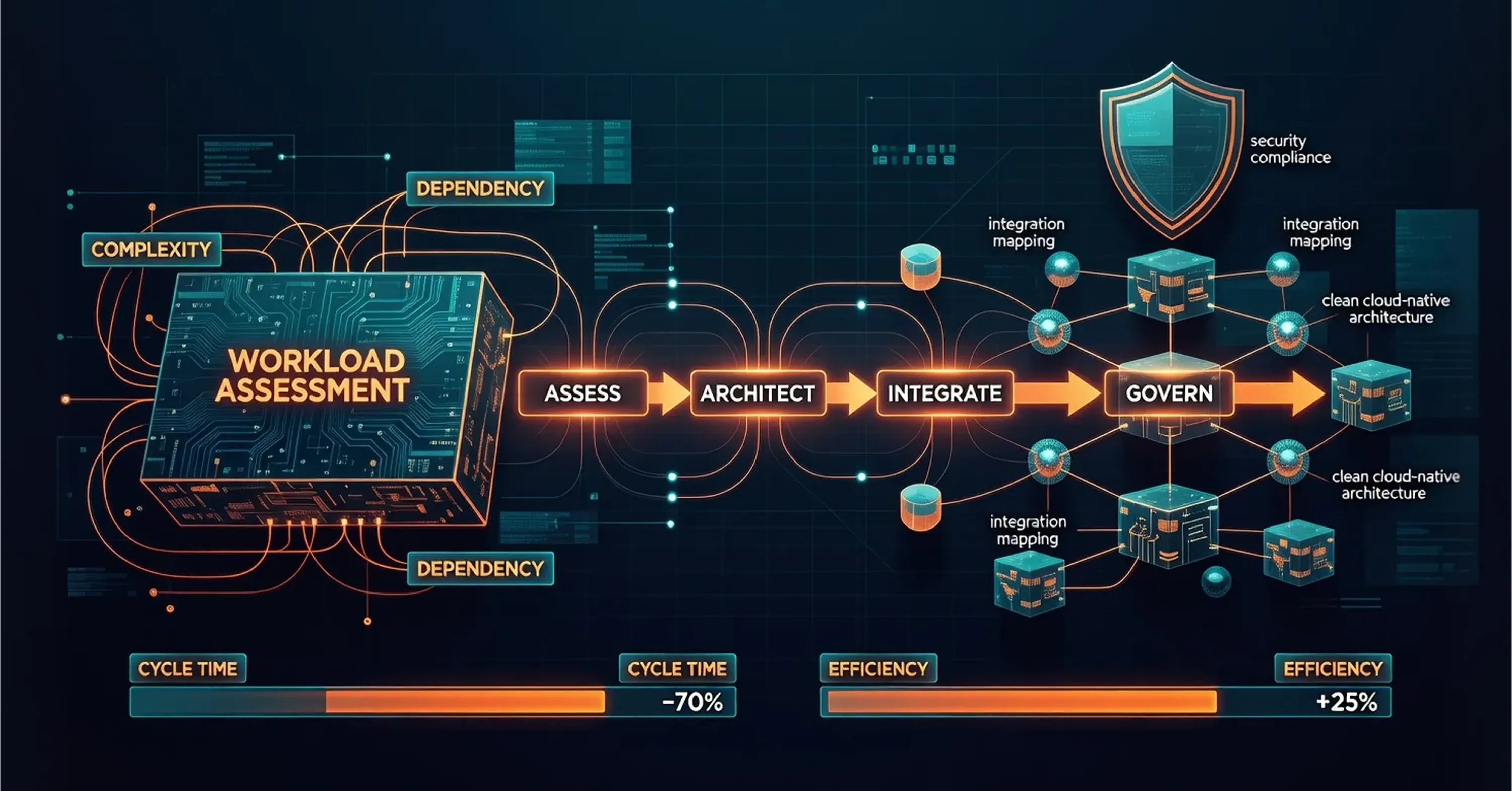 One common mistake is treating migration as a purely technical project. In practice, the organizations that see the strongest results are those that transform their operating model alongside the migration itself. Companies that do both can increase operational efficiencies by 20 to 25%, reduce cycle times up to 60 to 70%, and improve resilience and security of their applications by more than 30%.
